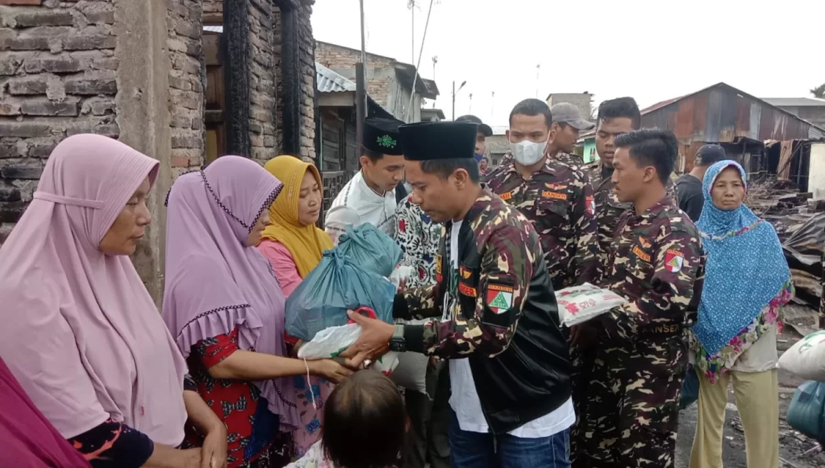 sentralberita I Batu Bara~Pimpinan cabang (PC) Gerakan Pemuda Ansor Kab. Batubara mengunjungi masyarakat korban kebakaran ditanjung Tiram sekaligus menyerahkan bantuan sembako pada Sabtu (5/2/2022).