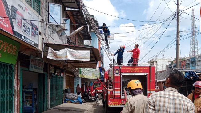 Informasi yang dihimpun, api pertama kali muncul dari dalam ruko yang dijadikan usaha penjualan roti dan kue-kue.