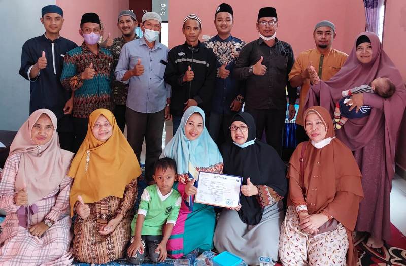 sentralberita I Batu Bara ~ Warga Desa Tanah Tinggi Kecamatan Air Putih Batu Bara dipandu oleh Tim Mualaf Center Batu Bara mengucapkan syahadat memeluk agama Islam di rumahnya, Rabu (09/02/2022)