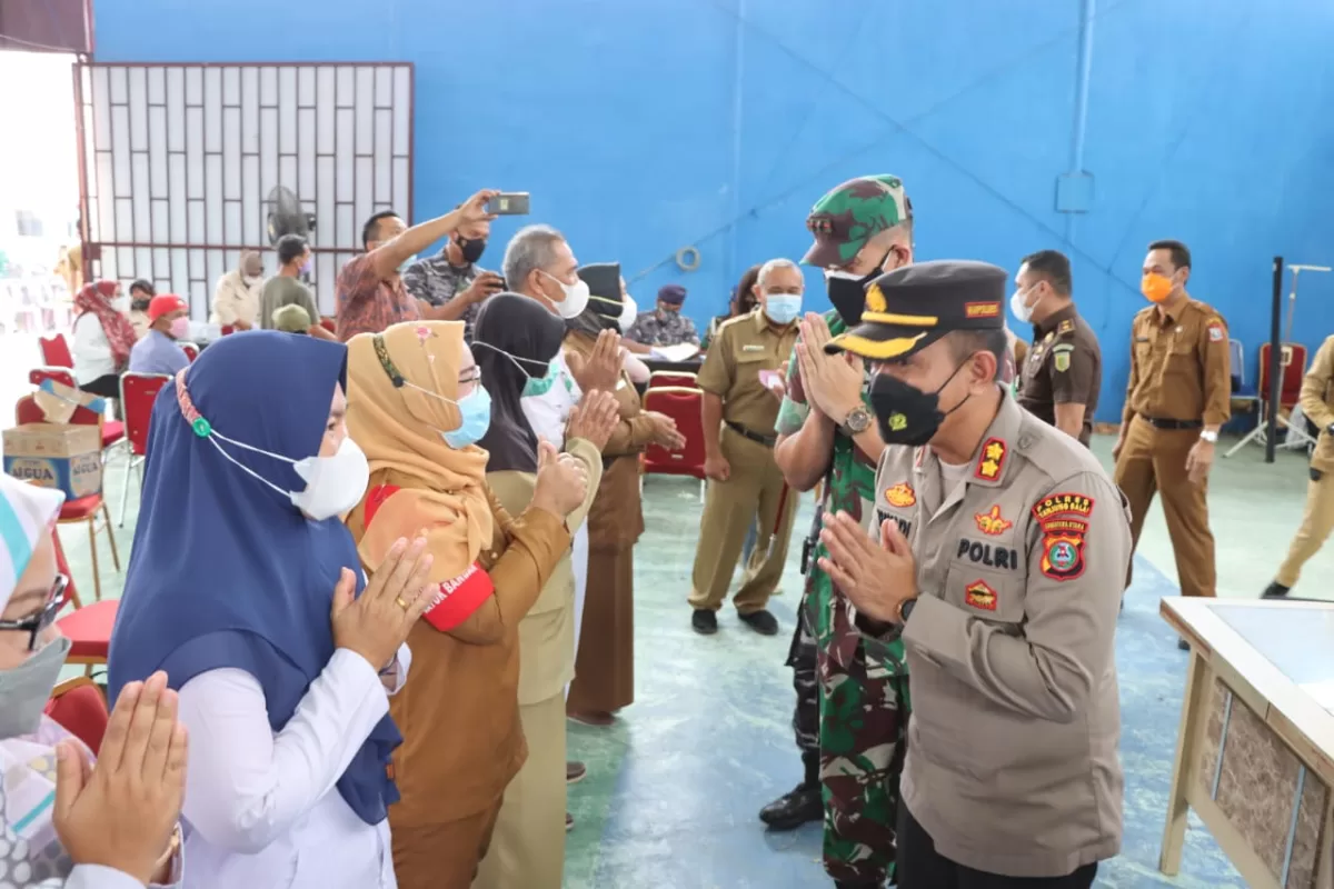 Selesai pelaksanaan launching Dokter Telemedicine, Kapolres Tanjung Balai AKBP Triyadi dan Forkopimda menyaksikan Plt. Walikota Tanjung Balai melaksanakan vaksinasi Dosis 3 / Booster di GOR Wira Satya Polres Tanjung Balai. (01/red)
