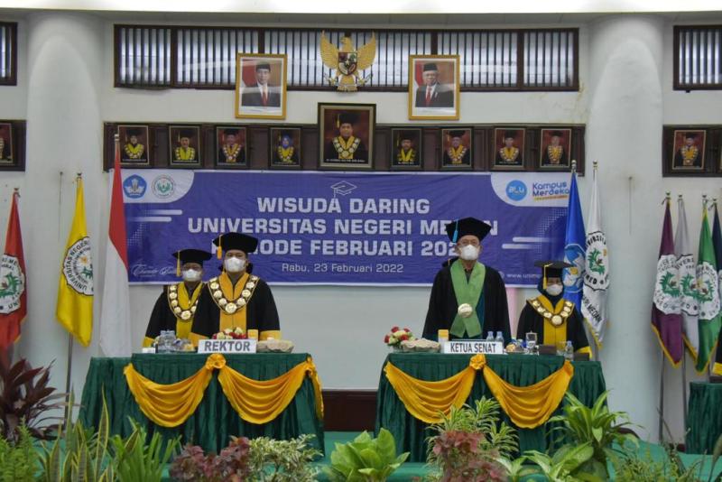 sentralberita| Medan~Universitas Negeri Medan menggelar upacara wisuda periode Februari 2022 secara blended, secara daring melalui Zoom Meeting dan Streaming Youtube dan secara luring terbatas yang dilaksanakan di Ruang Sidang A Gedung Pusat Administrasi Universitas Negeri Medan pada Rabu, (23/02). Dalam acara tersebut juga dilakukan penyampaian orasi ilmiah dari Ketua Senat Unimed, Prof. Dr. Syawal Gultom, M.Pd.