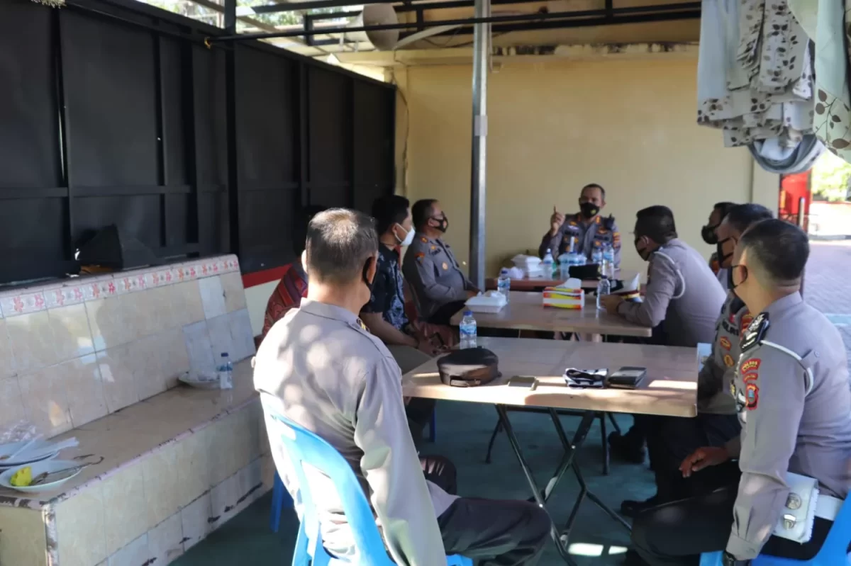 Kapolres Madina AKBP H.M. Reza Chairul, A.S, S.I.K, S.H, M.H laksanakan Coffee Morning bersama pejabat utama, erta para perwira Polres Madina di teras samping Mako Polres Madina, Jum’at (25/02/2022). (foto-RA)