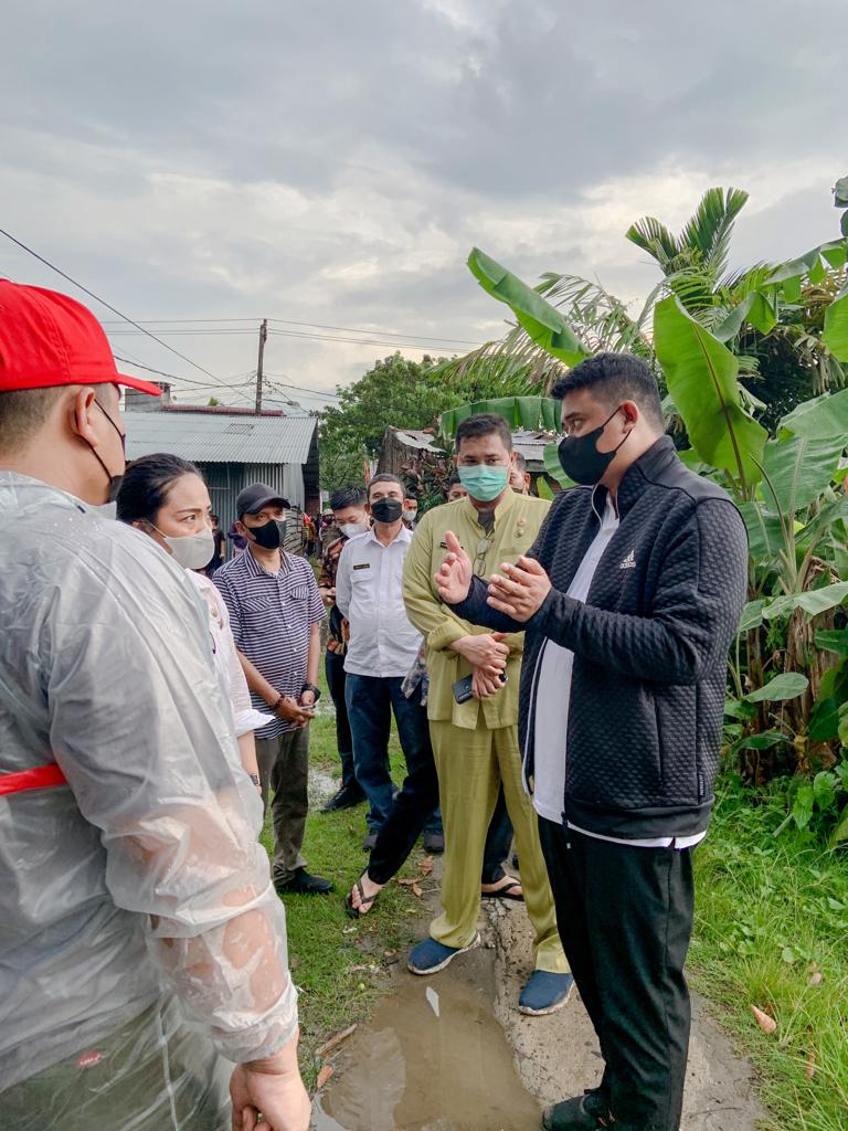 Wali Kota Medan Bobby Nasution. Saat melaksanakan program Sapa Lingkungan (Saling), Jum’at (8/4), meninjau Jalan Aman. (F-hum)