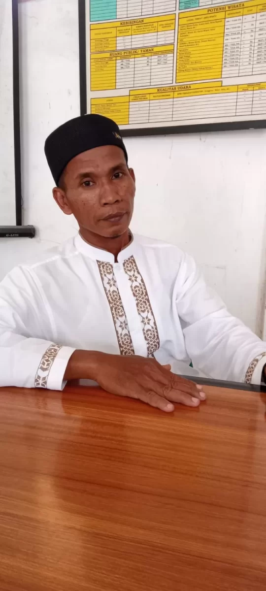 Kepala Desa Gedangan Kecamatan Pulo Bandering Kabupaten Asahan ,Syarifuddin Arif saat memberikan penjelasan kepada kru sentralberita.com. (f-za)