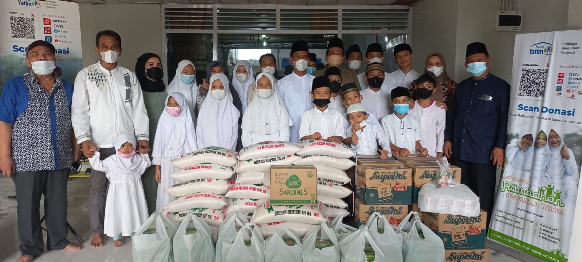 Di Rumah Yatim, Dirut secara simbolis menyerahkan beras sebanyak 31 karung ukuran 10 kg, mie instan 20 kotak, ikan kaleng 25 kaleng, dan susu kental manis 10 kaleng dan menu berbuka puasa nasi kotak dan santunan kepada masing-masing anak-anak.