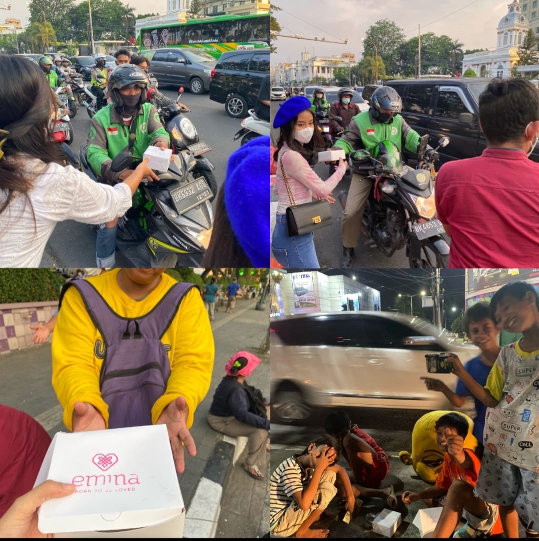 Emina promotor Alfah Septianti menambahkan, kami membagikan takjil di sekitar Merdeka Walk. “Kegiatan bagi-bagi takjil ini juga dibantu oleh Jessica Yunda Riyantono yang merupakan Putri Remaja Indonesia Sumut 2020.