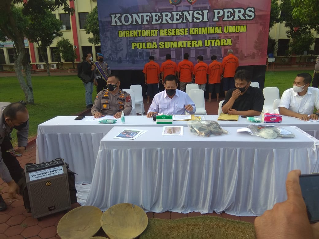 sentralberita | Medan ~ Polda Sumut melalui Dirkrimum, Rabu (18/05/2022), menggelar konferensi pers terkait tewasnya 12 orang penambang emas ilegal di Sibinail Bandar Limabung, Kecamatan Lingga Bayu, Kabupaten Mandailing Natal (Madina)