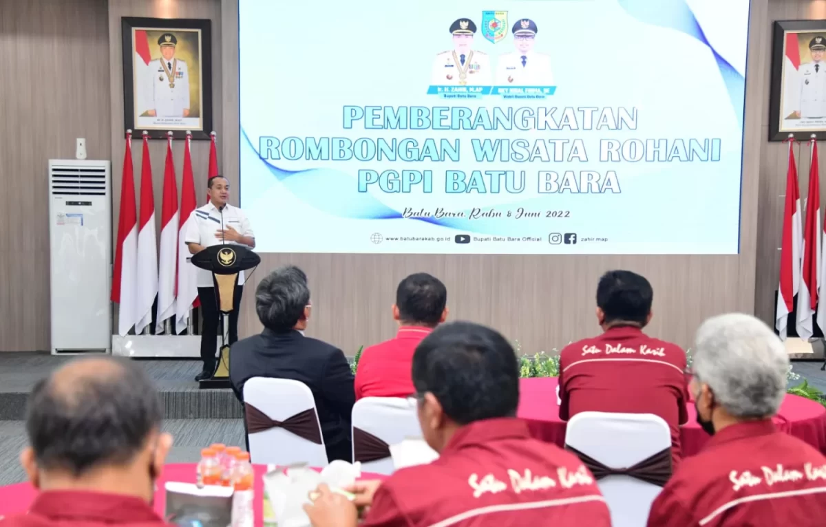 sentralberita | Batubara ~ Bupati Batu Bara, Ir. H. Zahir, M.AP, menghadiri acara pelepasan pemberangkatan wisata rohani Persekutuan Gereja-Gereja Pentakosta Indonesia (PGPI) di Aula Rumah Dinas Bupati Batu Bara, Rabu (08/06/2022).