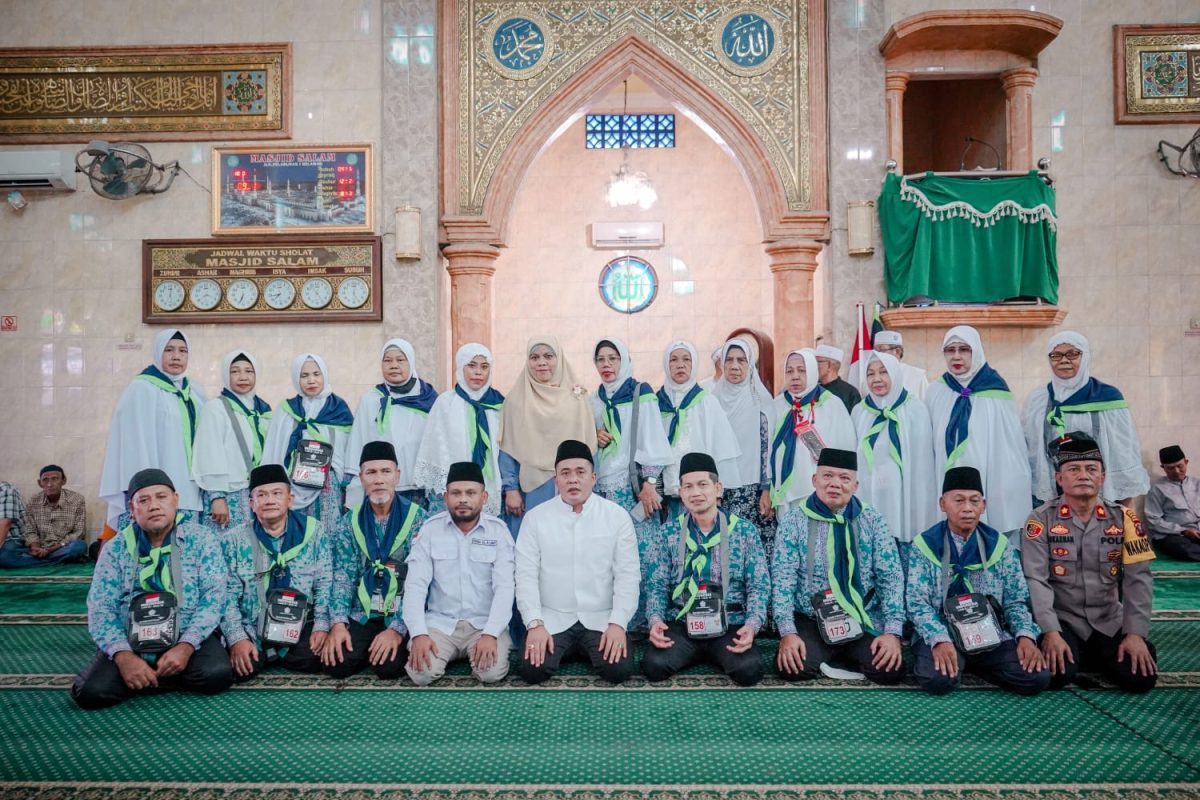 Pelepasan 25 orang jamaah calon haji (calhaj) dari Kelompok Bimbingan Ibadah Haji dan Umroh (KBIHU) Al Alawiy di Masjid Salam Jalan Raya Pelabuhan Simpang Tol Kampung Salam, Kelurahan Belawan II, Kecamatan Medan Belawan.(f-ist)