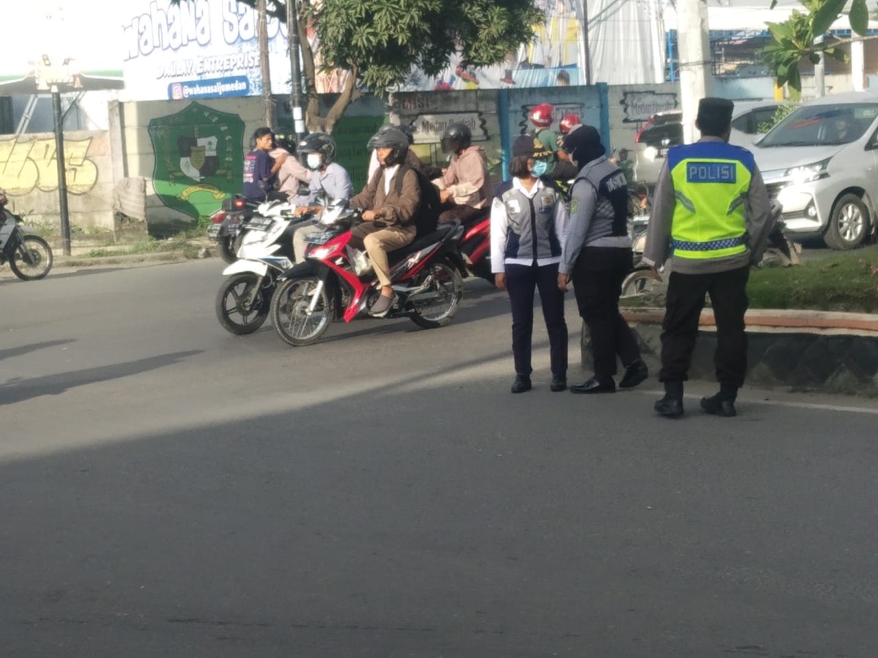 Satuan Lalulintas Polrestabes Medan dan Sat Samapta tingkatkan melakukan pengamanan dan pengaturan lalin setiap pagi di sejumlah ruas jalan di Kota Medan.(f-ist)