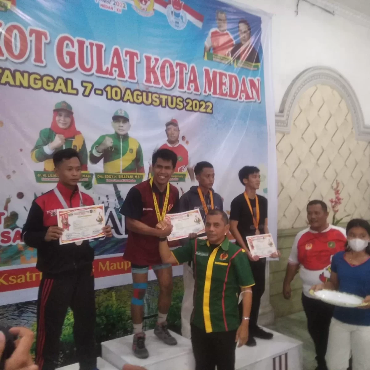 sentralberita | Medan ~ Para atlet gulat Kecamatan Medan Denai sukses mendominasi arena gulat Porkot XII 2022. Pada laga yang berakhir Rabu (10/8/2022), Denai merebut 7 medali emas, 3 perak dan 2 perunggu.