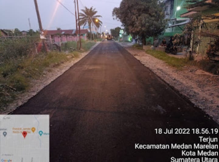 Salah satu jalan yang telah selesai diperbaiki adalah di jalan Marelan Saga, Kel. Terjun, Kec. Medan Marelan. Jalan yang dulunya rusak parah kini telah dilakukan pengaspalan secara maksimal sehingga jalan tersebut sudah mulus untuk dilalui oleh masyarakat sekitar.