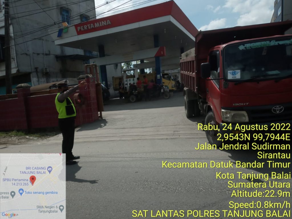 Kapolres Tanjungbalai AKBP Ahmad Yusuf Afandi SIK. MM, melalui Kasat Lantas Polres Tanjungbalai AKP Hotlan Wanto Siahaan mengatakan “Giat yang dilaksanakan Personil Satlantas Polres Tanjungbalai adalah kegiatan patroli terhadap SPBU yang menjual BBM dengan menggunakan dirigen pribadi, patroli dilaksanakan guna mengantisipasi kelangkaan BBM,” Kata Kasat.