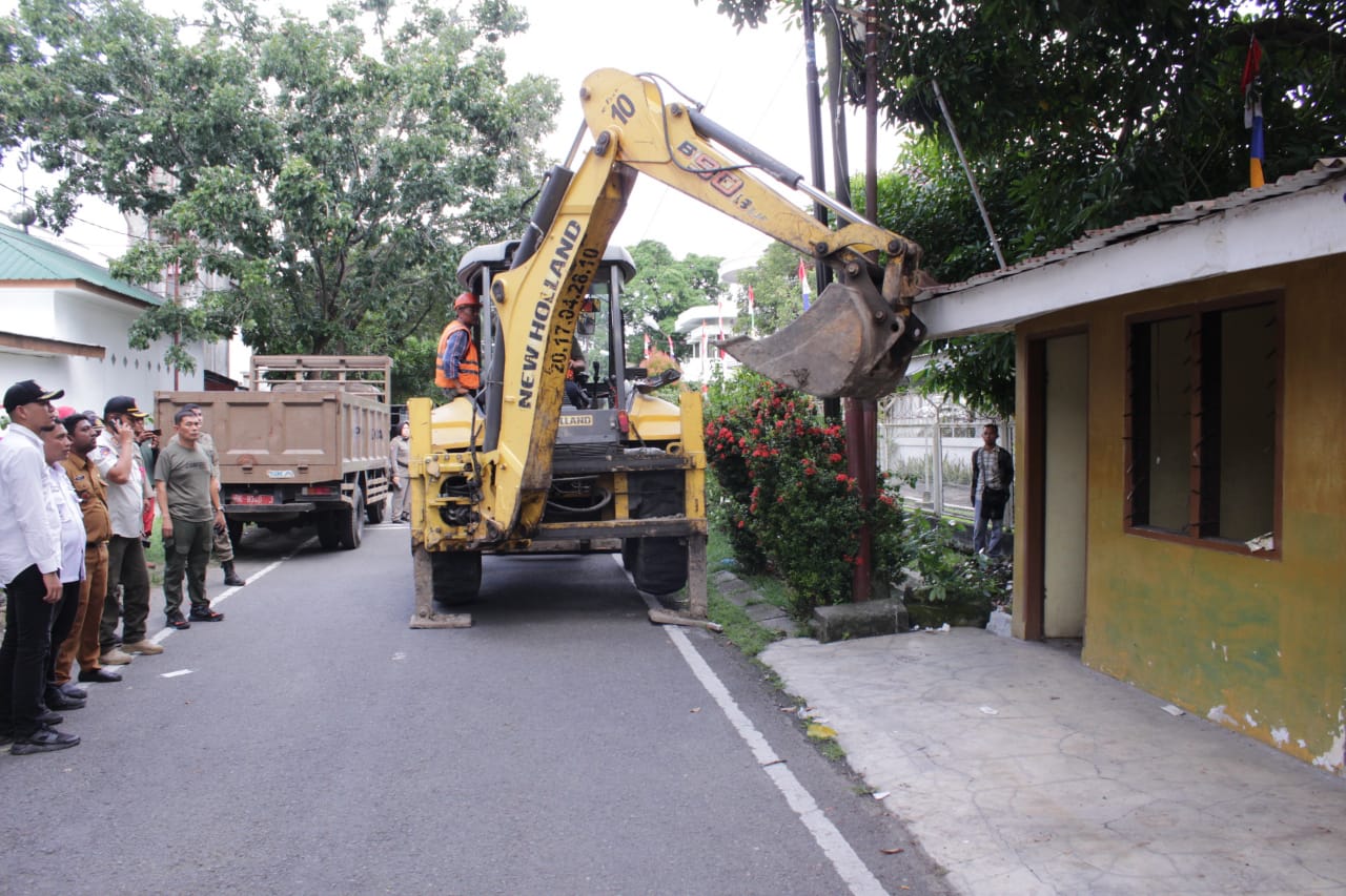 Tim Gabungan Satpol PP Medan Bongkar Bangunan yang berdiri di atas Drainase