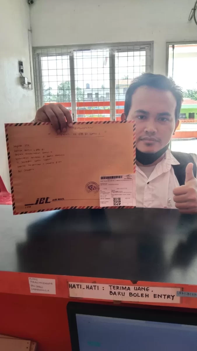 Ketua PTKNI Kab. Batu Bara Purnawa saat mengirimkan surat ke DPR RI (Sb/F~Wan)