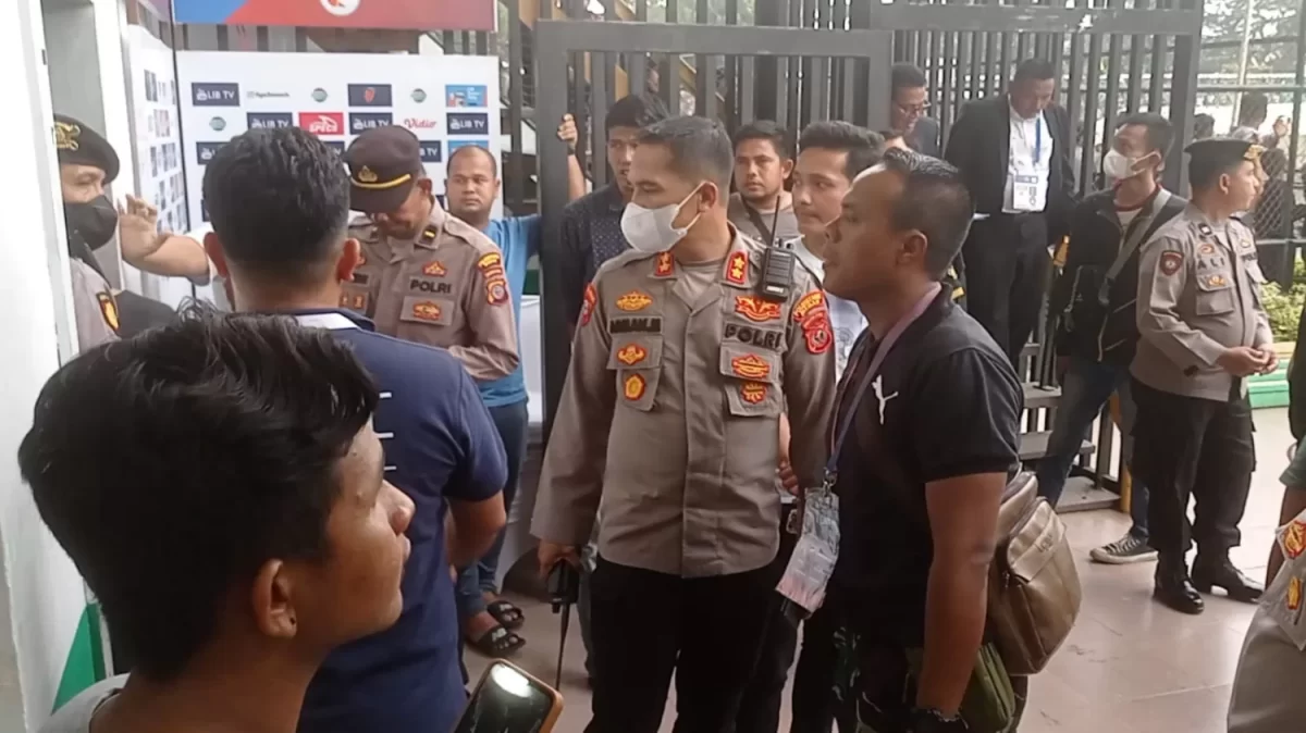 Pengamanan dalam pertandingan liga 2 mempertemukan PSMS Medan vs Sriwijaya FC yang digelar di Stadion Teladan Medan, Minggu (18/9/2022).(f-ist)