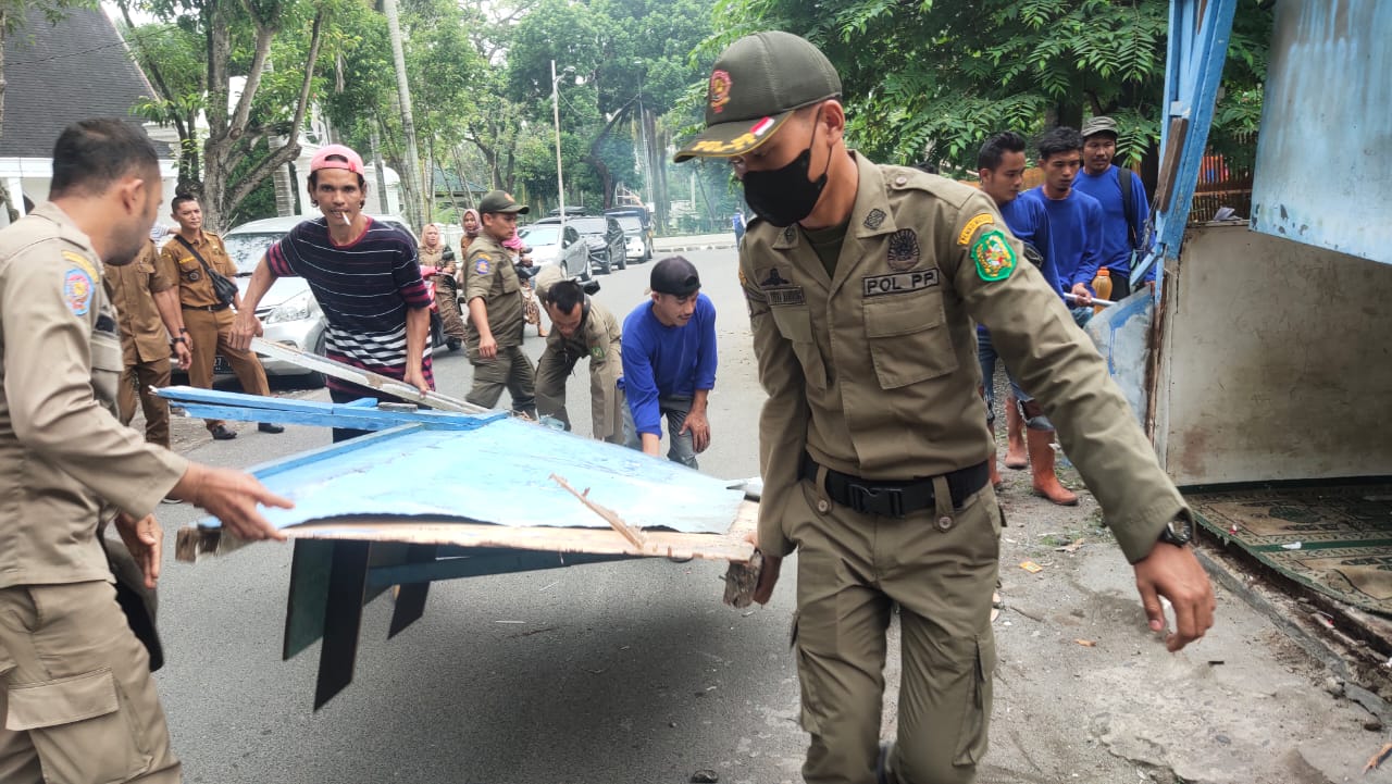 Tim Satpol PP Bongkar Bangunan diatas Drainase di Medan Baru