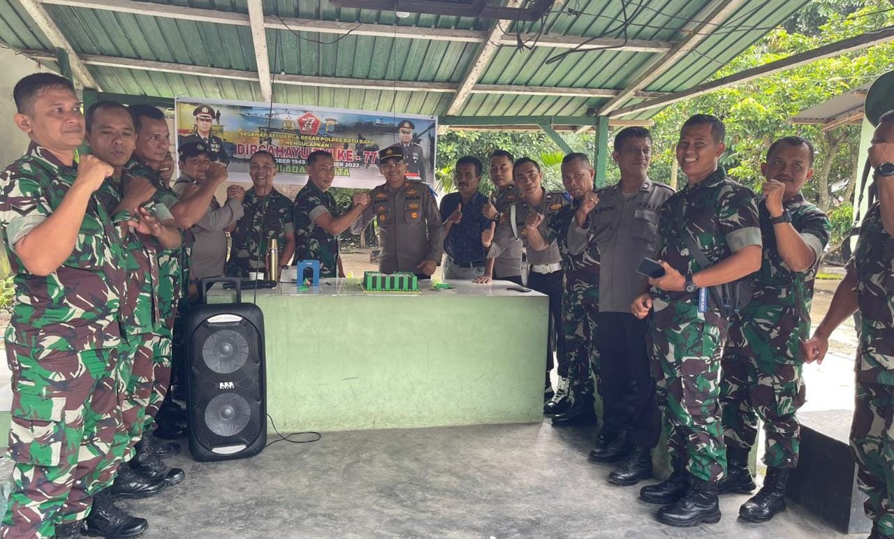 Kapolsek lima puluh AKP Rusdi mengucapkan selamat ulang tahun TNI ke-77, tahun 2022. Dan menyampaikan terima kasih kepada koramil 03 Lima Puluh yang selama ini sudah bersinergi dengan Polsek Lima puluh, dalam membantu mengelola Harkamtibmas di wilayah Polsek lima puluh,