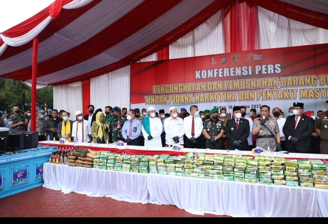 Kemudian, Hadi menyebutkan berbagai langkah dan upaya Polda Sumut terus dilakukan baik bersifat sosialisasi edukasi hingga penindakan hukum, di tahun 2022 pengungkapan narkoba ini mengalami penurunan seiring dengan masivnya tindakan hukum yang dilakukan.