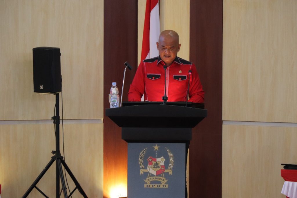 sentralberita| Medan~ Fraksi PDI Perjuangan DPRD Medan sampaikan sejumlah usulan dan kritikan kepada Pemko Medan terkait peningkatan kenyamanan dan pembangunan di Kota Medan. Usulan itu disampaikan Ketua Fraksi PDIP DPRD Medan Robi Batus SE dalam pendapat akhirnya agenda pengesahan APBD TA 2023 rapat paripurna di gedung DPRD Medan, Selasa (22/11/2022).
