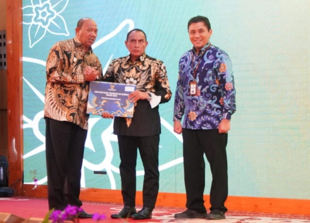 sentralberita I Langkat – Pelaksana Tugas (Plt) Bupati Langkat H Syah Afandin SH mengikuti kegiatan Penyerahan Daftar Isian Pelaksanaan Anggaran (DIPA) dan Daftar Alokasi TKDD Tahun Anggaran 2023, di Aula Tengku Rizal Nurdin Rumah Dinas Gubsu, Medan, Jumat (2/12/2022).