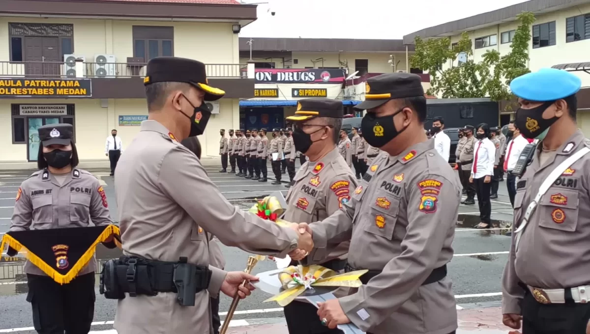 Kapolrestabes Medan Kombes Valentino Alfa Tatareda usai pimpin apel sekaligus penyerahan Randis R4 Daubel Cabin di Mapolrestabes Medan.