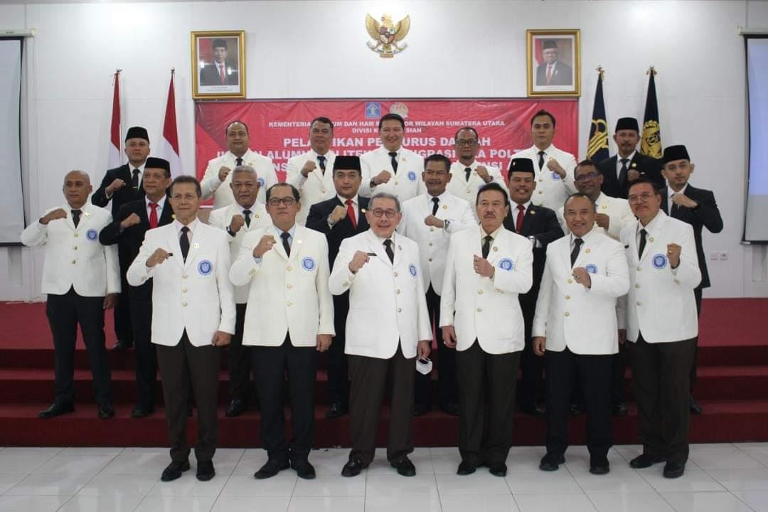 Ikatan Alumni Politeknik Imigrasi (IKA POLTEKIM) Sumatera Utara dan Aceh resmi dilantik, Senin (12/12/2/22), di Aula Soepomo Kantor Wilayah Kementerian Hukum dan HAM Sumatera Utara.(f-ist)