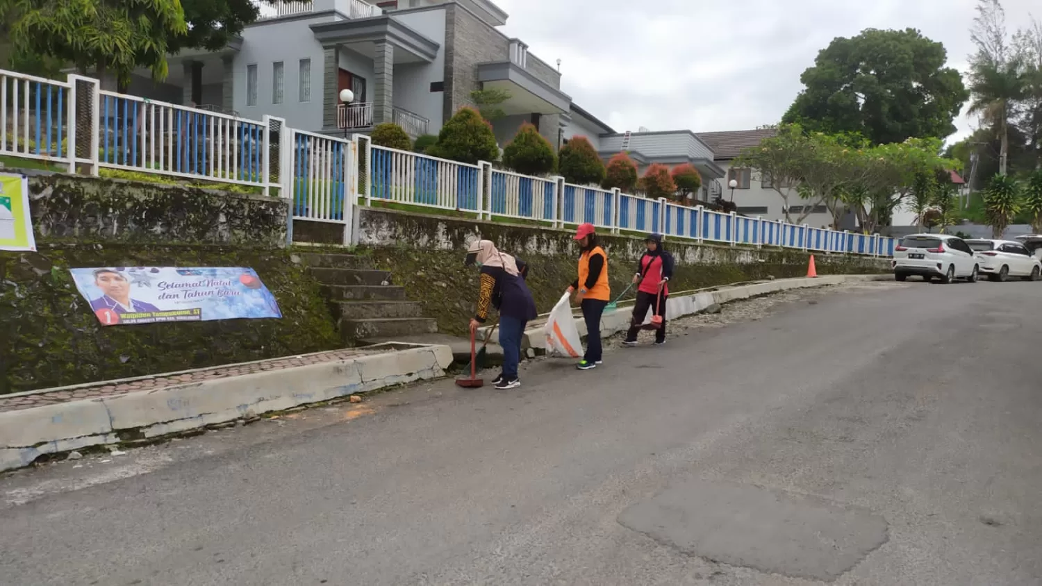 Awal Tahun 2024, Pegawai dan Staf Kantor Camat Girsip Turun Tangan Bersihkan Sampah