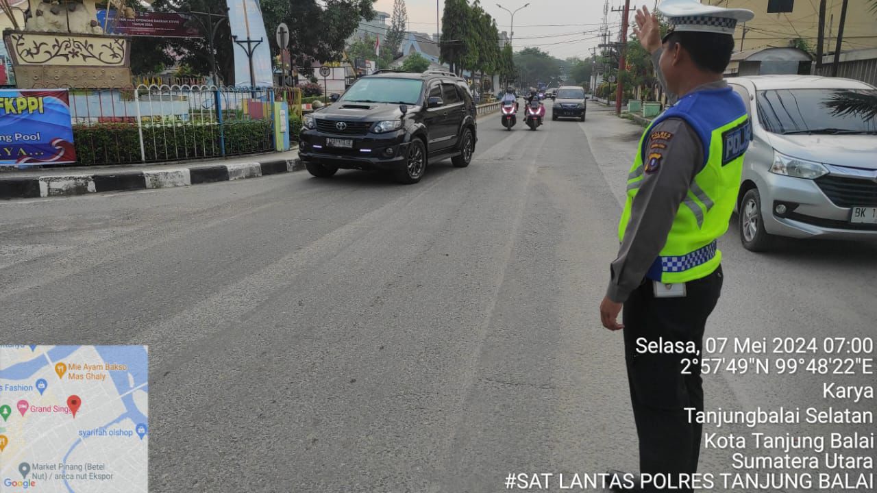 Lancarkan Perjalanan Warga Sat Lantas Polres Tanjung Balai Hadir di Pagi Hari Dalam Rangka Operasi Mantap Brata