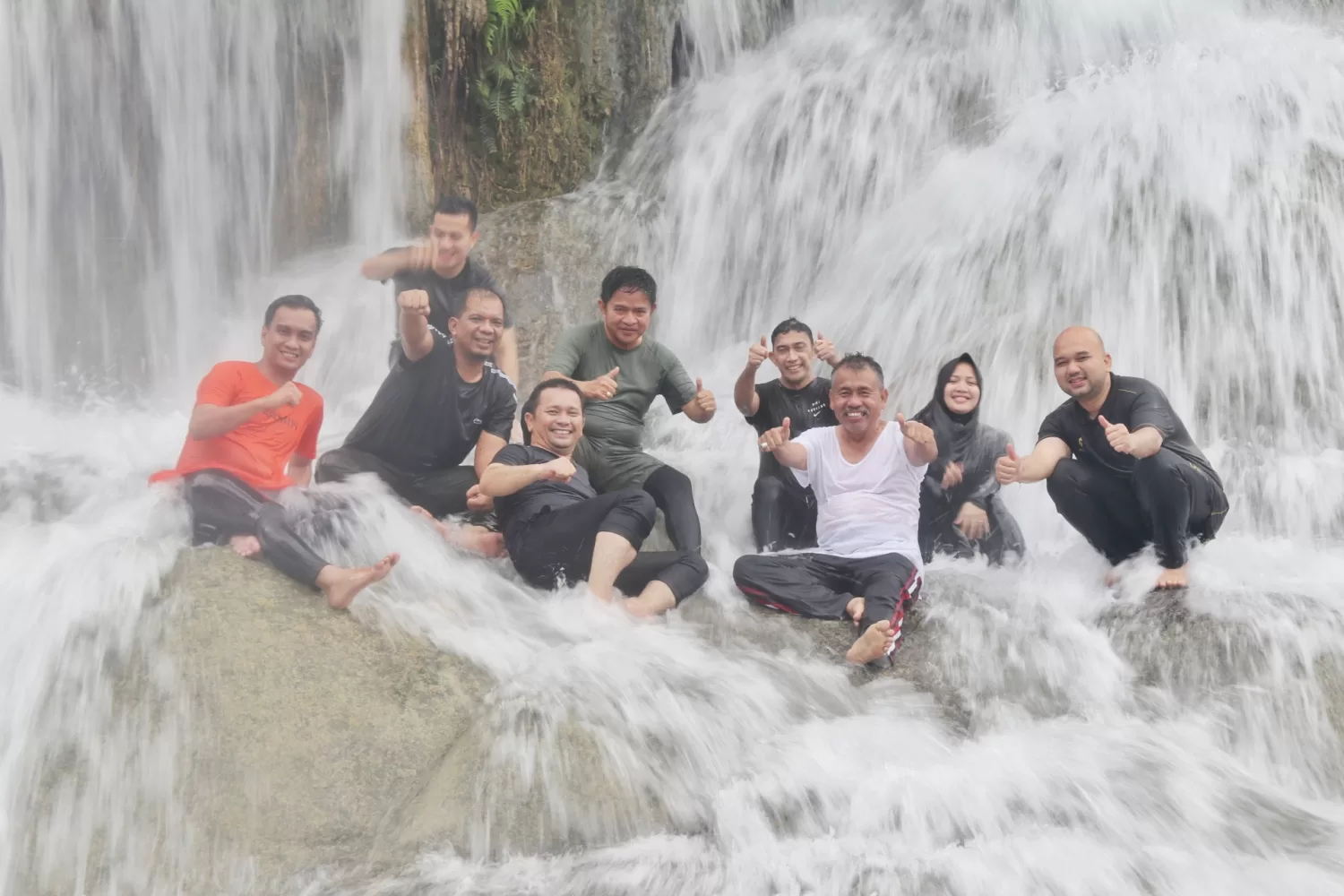 Tidak hanya sekadar menikmati suasa alam dan keindahan air terjun, Pj Gubernur juga mengajak Asisten Pemerintahan dan Kesejahteraan Rakyat Basarin Yunus Tanjung, Kepala Biro Umum Dedi Jaminsyah Putra, turut menceburkan diri menikmati jernih dan sejuknya air sungai yang mengalir tanpa henti.