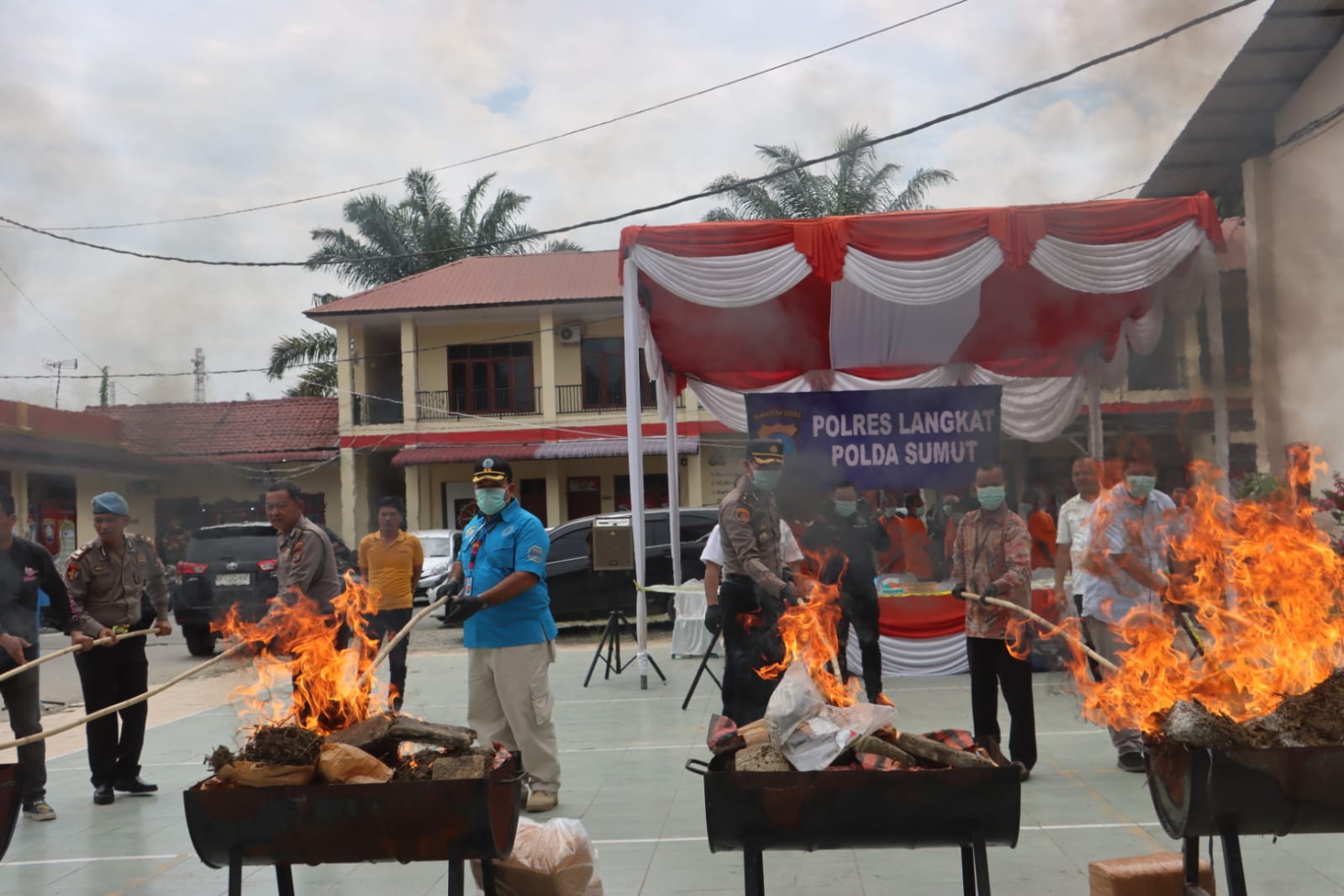 Pemusnahan barang bukti ini dipimpin oleh Wakapolres Langkat, KOMPOL Henman Limbong, SP, SIK, dan dihadiri oleh Kepala BNNK Langkat AKBP S. Bangko, S.H., M.B.A, Kasi Pidum Kejari Langkat yang diwakili, Ketua Pengadilan Negeri Stabat yang diwakili, Kasi Humas Polres Langkat AKP Rajendra Kusuma. Plh. Kasat Narkoba Iptu P. Sihotang, SH dan perwakilan dari Labfor Polda Sumut Iptu M. Hansari