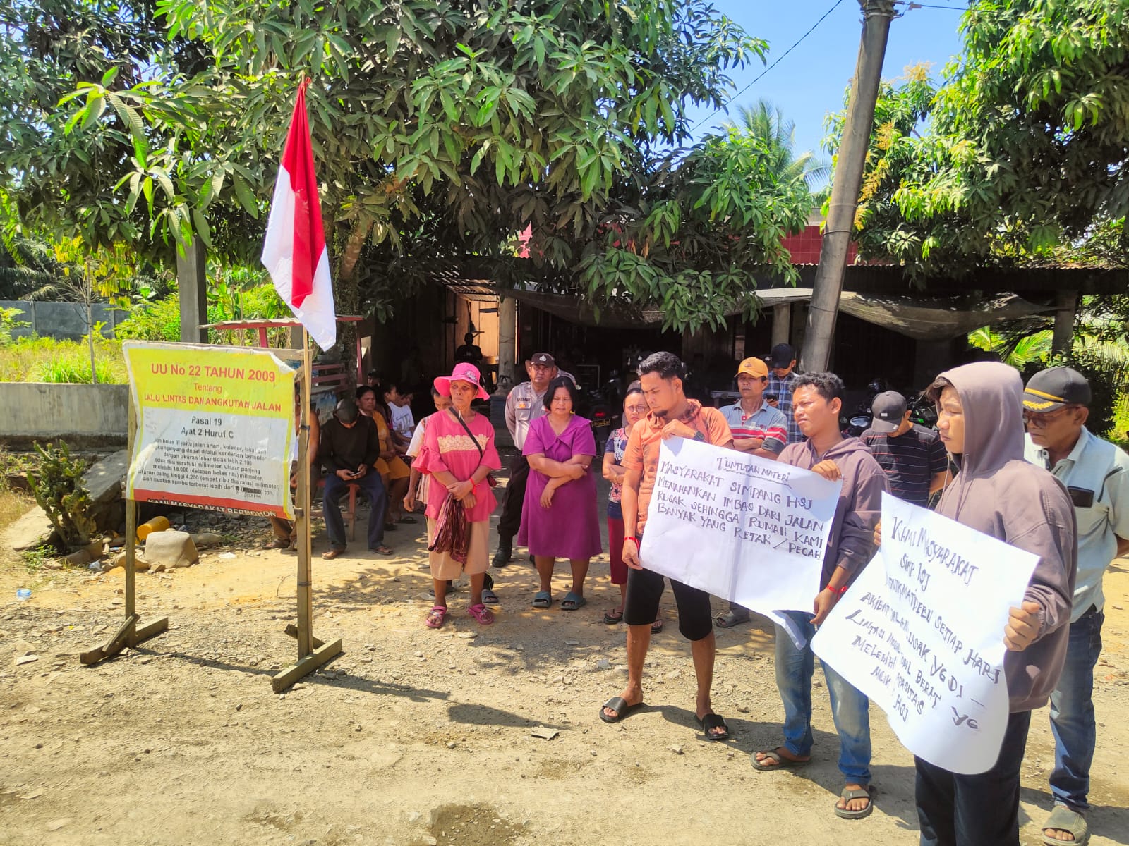 sentralberita | Labuhanbatu ~ Warga Sei Tampang Kecamatan Bilah Hilir Kabupaten Labuhanbatu, Sumatera Utara kembali membentangkan spanduk aksi di jalan menuju perusahaan perkebunan PT Hari Sawit Jaya (HSJ), Rabu (24/07/2024).