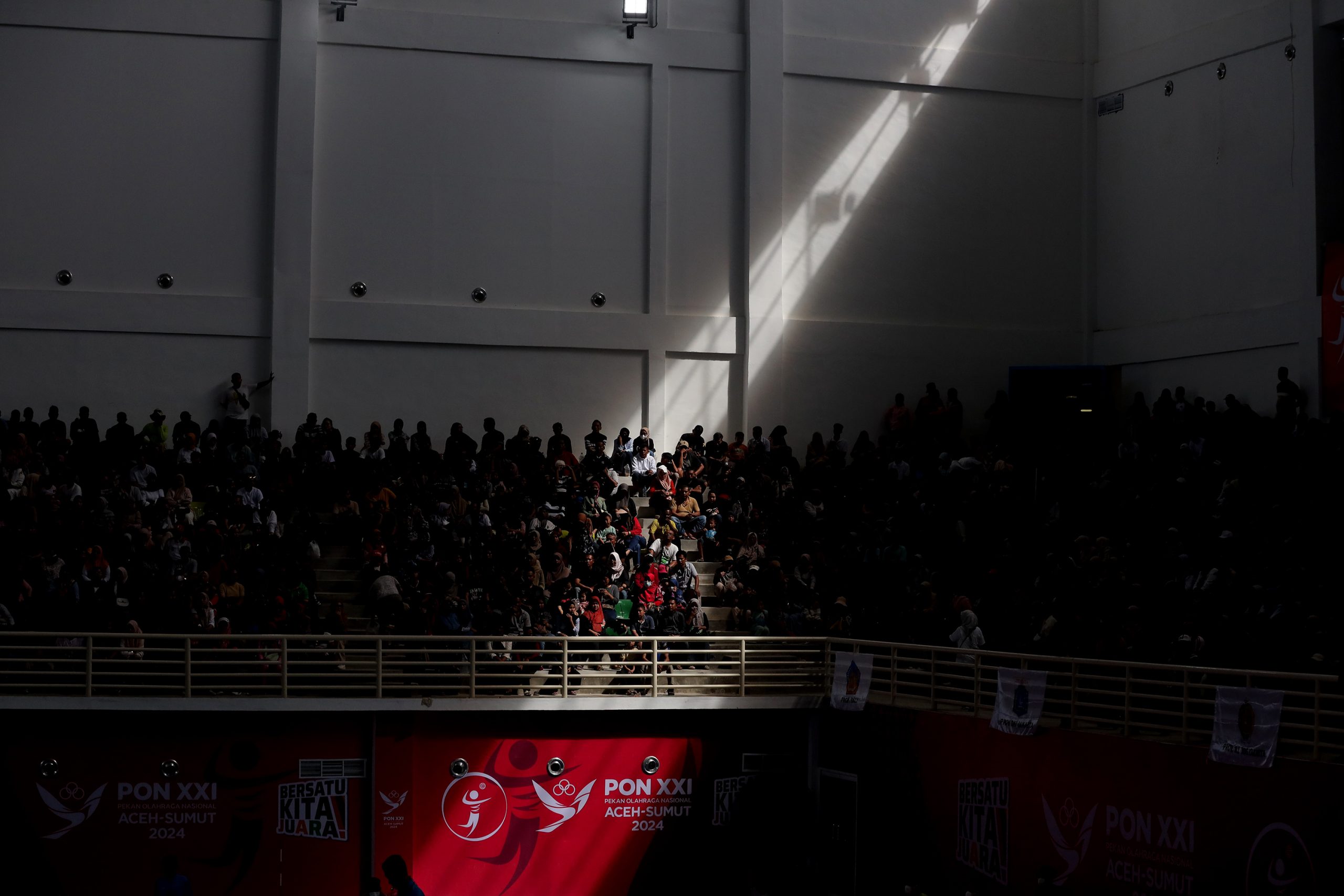 Ramainya penonton diperkirakan karena antusias masyarakat yang ingin menonton pertandingan tim voli putri Jawa Barat (Jabar) melawan Jawa Tengah (Jateng).