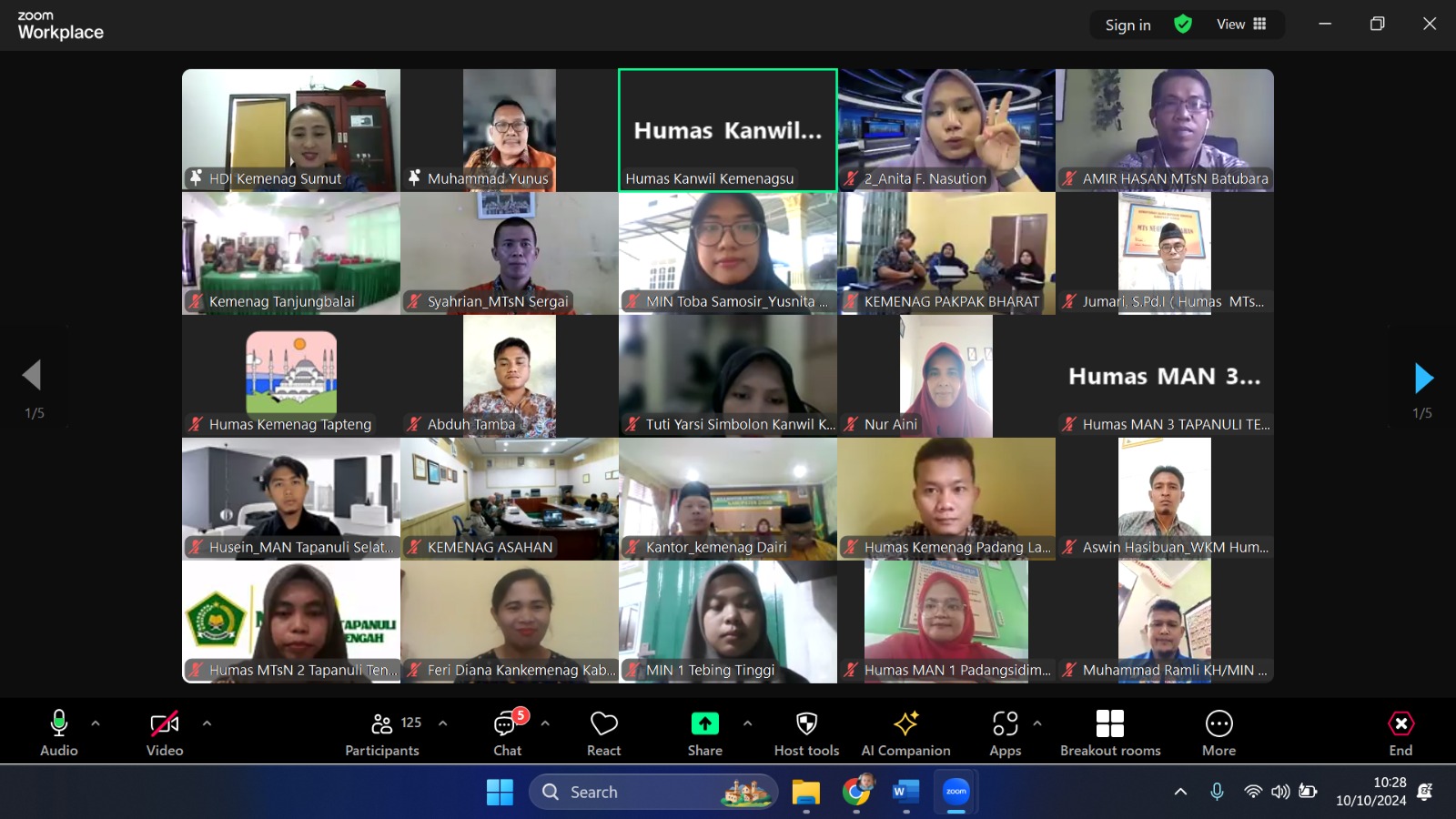 sentralberita | Medan ~ Tim Kerja Humas, Data dan Informasi Kanwil Kementerian Agama Provinsi Sumatera Utara menggelar Workshop Penulisan Berita dan Pengelolaan Media Sosial melalui Zoom Meeting yang dibuka oleh Kepala Kanwil Kemenag Sumatera Utara diwakil Kepala Bagian Tata Usaha Drs.H. Muhammad Yunus, MA, Kamis (10/10/2024).