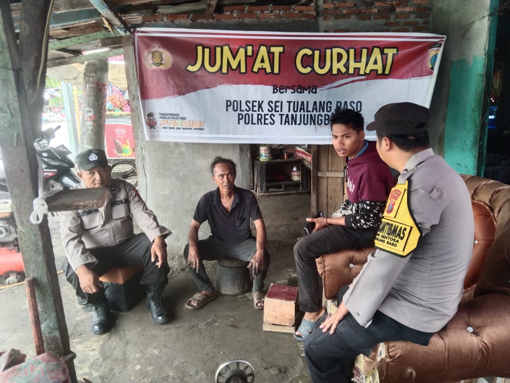 sentralberita | Tanjung Balai ~ Dalam suasan hangat dan kekeluargaan, Polres Tanjung balai melalui Polsek Sei Tualang Raso melaksanakan Jumat curhat bertemu warga menyapa warga guna mengetahui perkembangan situasi Kamtibmas di lingkungan warga