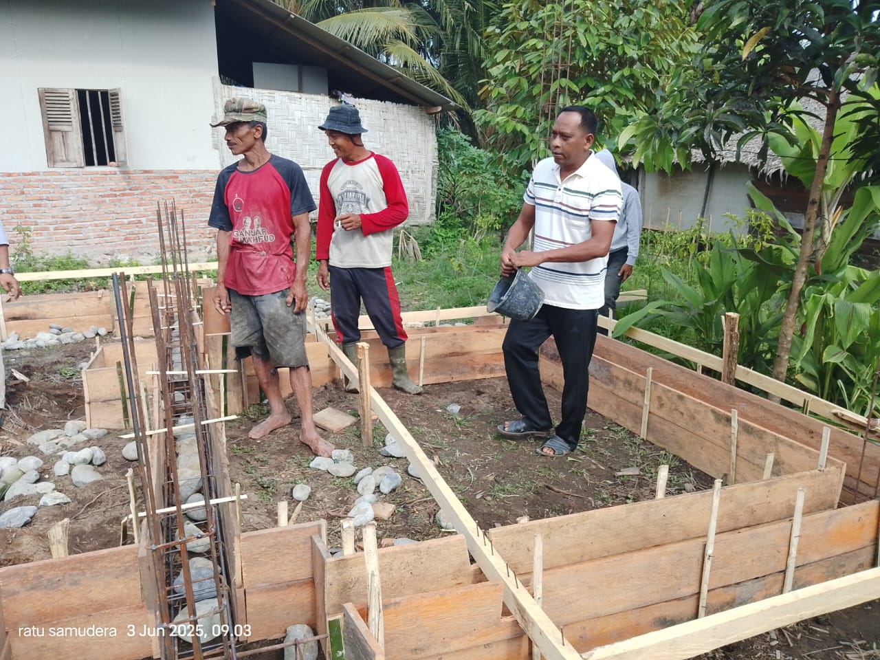 sentralberita I Langkat – Nazlan Anggota DPRD Kabupaten Langkat dari fraksi Golkar melakukan peletakan batu pertama pengecoran Masjid Nurul Huda Dusun I (satu) Desa Perkotaan, Kecamatan Secanggang, Jabupaten Langkat, Sumatera Utara, Selasa (03/6/ 2025)
