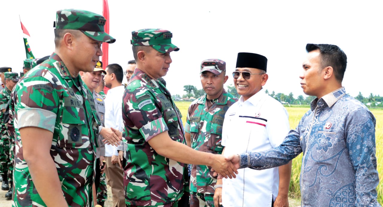 sentralberita|Simalungun~Bupati Simalungun, Dr H Anton Achmad Saragih dan Wakil Bupati, Benny Gusman Sinaga bersama-sama hadir mengikuti kegiatan Panen Raya Padi di lahan Ketahanan Pangan Kodam I/BB bersama Panglima TNI, Jenderal TNI Agus Subiyanto.