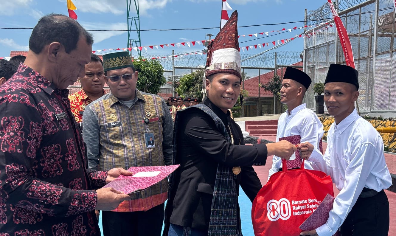 sentralberita|Simalungun~Dalam rangka memperingati Hari Ulang Tahun (HUT) ke-80 Kemerdekaan Republik Indonesia Tahun 2025, Bupati Simalungun diwakili Wakil Bupati, Benny Gusman Sinaga, menyerahkan surat remisi khusus kepada perwakilan Warga Binaan Pemasyarakatan (WBP), Minggu (17/8/2025).