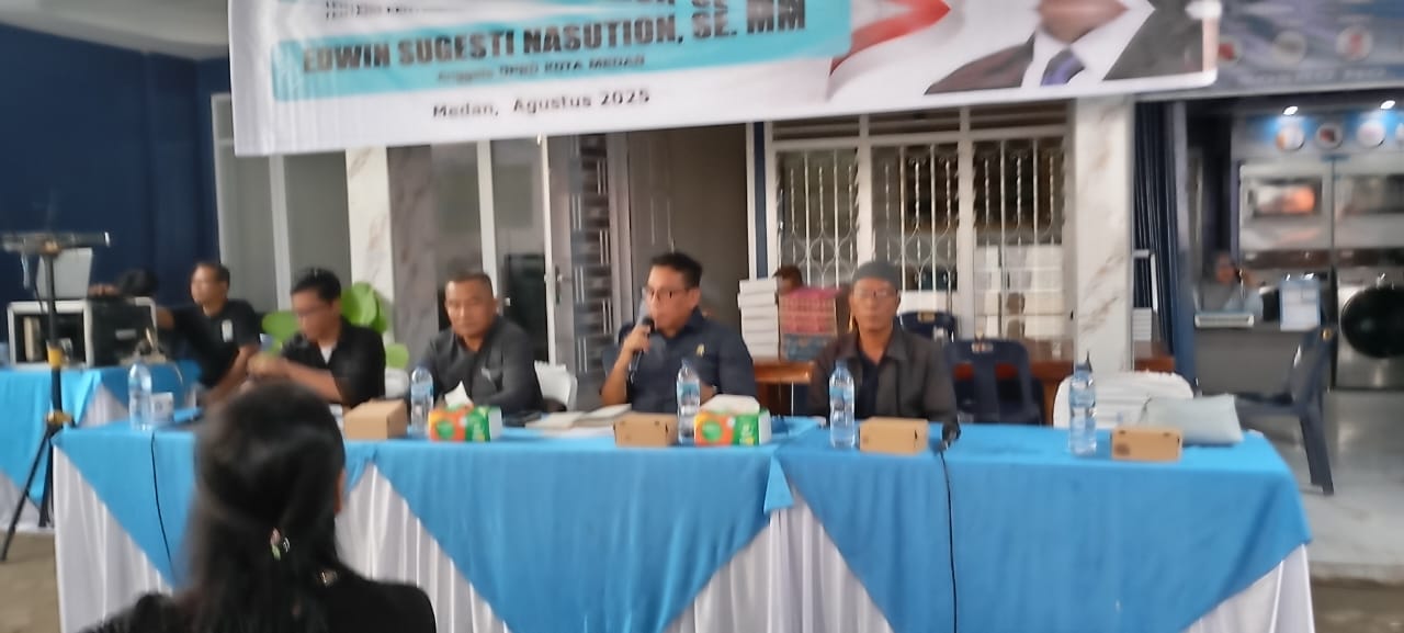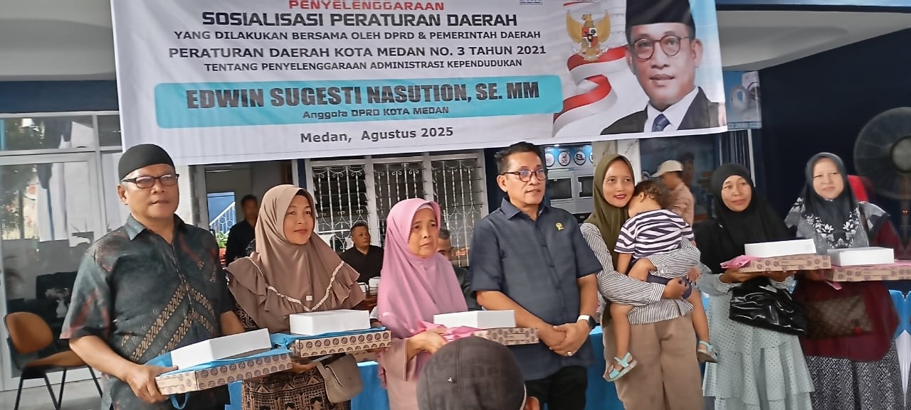 sentralberita| Medan~Anggota DPRD Kota Medan, Edwin Sugesti Nasution, SE, MM melaksanakan Sosialisasi Peraturan Daerah (Perda) Nomor 3 Tahun 2021 tentang Penyelenggaraan Administrasi Kependudukan dua hari, Sabtu (23/8/2025) dan Minggu (24/8/2025) di Jalan Sosro Lingkungan 6 Kelurahan Bantan Kecamatan Medan Tembung.Edwin minta masyarakat jangan ditunda-tunda mengurus kelengkapan Adminduk di Kota Medan.
