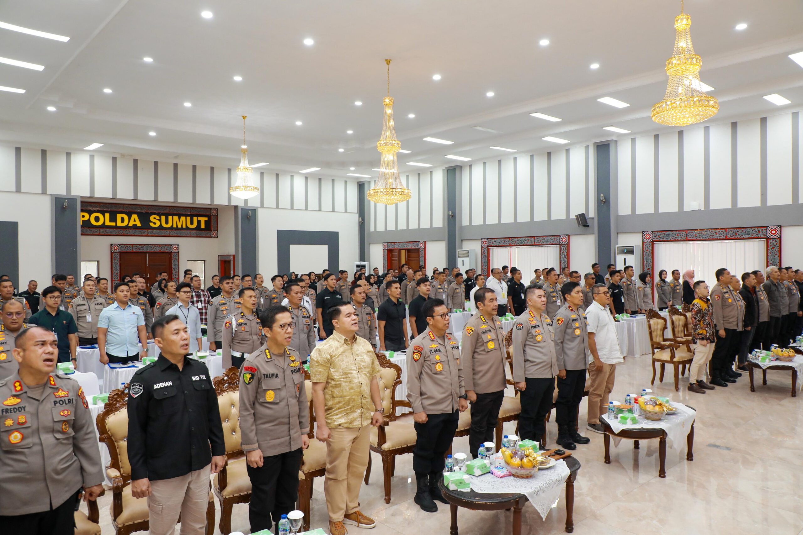 Rakernis dibuka oleh Kapolda Sumut Irjen Pol Whisnu Hermawan Februanto, S.I.K., M.H. yang dalam kesempatan tersebut diwakili Wakapolda Sumut Brigjen Pol Rony Samtana, S.I.K., M.T.C.P..