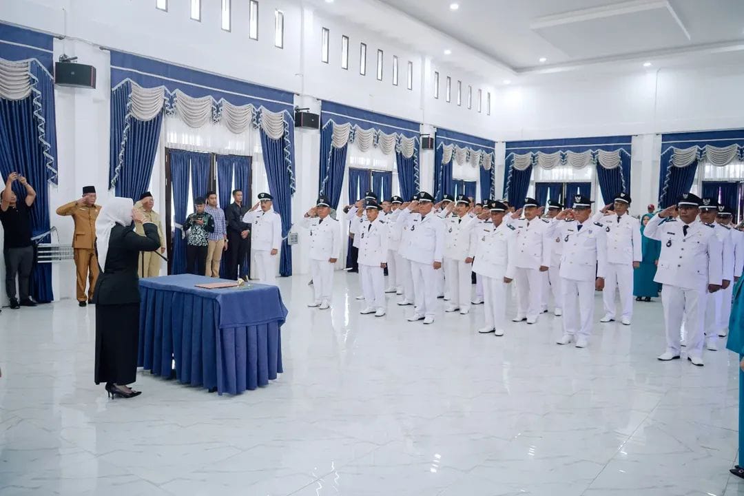 “Sehingga pada hari ini resmi masa jabatan kepala desa mengalami perpanjangan jabatan 2 tahun sejak dikukuhkan, dengan harapan bertambahnya masa jabatan ini semakin meningkatkan semangat dalam bekerja untuk mengabdi kepada masyarakat desa masing-masing,” ucap Maya saat acara pengukuhan di Aula Pendopo Rumah Dinas Bupati, Jalan WR Supratman, Kecamatan Rantau Utara, Jumat (29/8/2025).