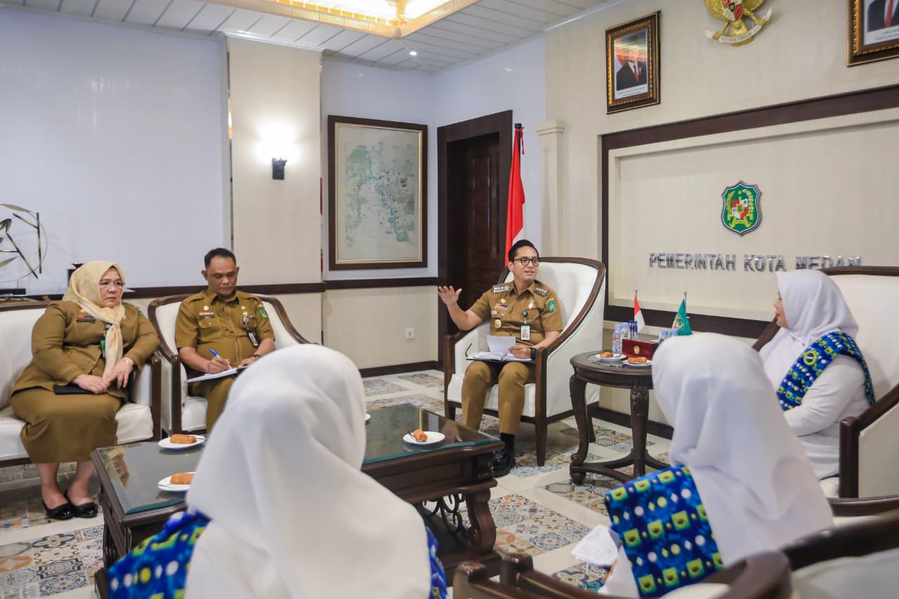 Hal ini disampaikan Wali Kota Medan Rico Tri Putra Bayu Waas ketika menerima audiensi Ketua PD BKMT Kota Medan Nurasiah Harahap di Balai Kota, Senin (8/9/25). Selain bersilaturahmi kehadiran BKMT ini juga untuk memperkenalkan jajaran pengurus dan berbagai program kerja.