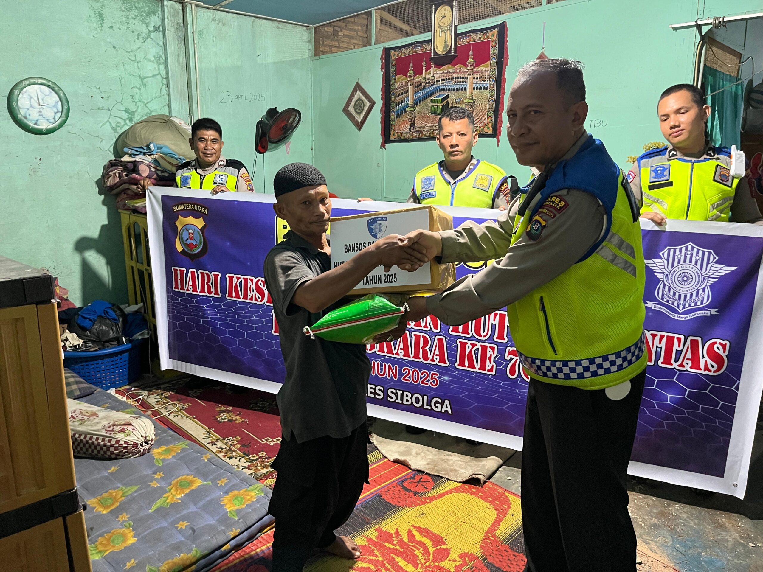 sentralberita | Sibolga ~ Dalam rangka memperingati *Hari Keselamatan Lalu Lintas* dan *HUT Lalu Lintas Bhayangkara ke-70*, Satuan Lalu Lintas (Satlantas) Polres Sibolga melaksanakan kegiatan *pemberian bantuan sosial* kepada masyarakat kurang mampu di Kota Sibolga, Senin (15/09/2025).
