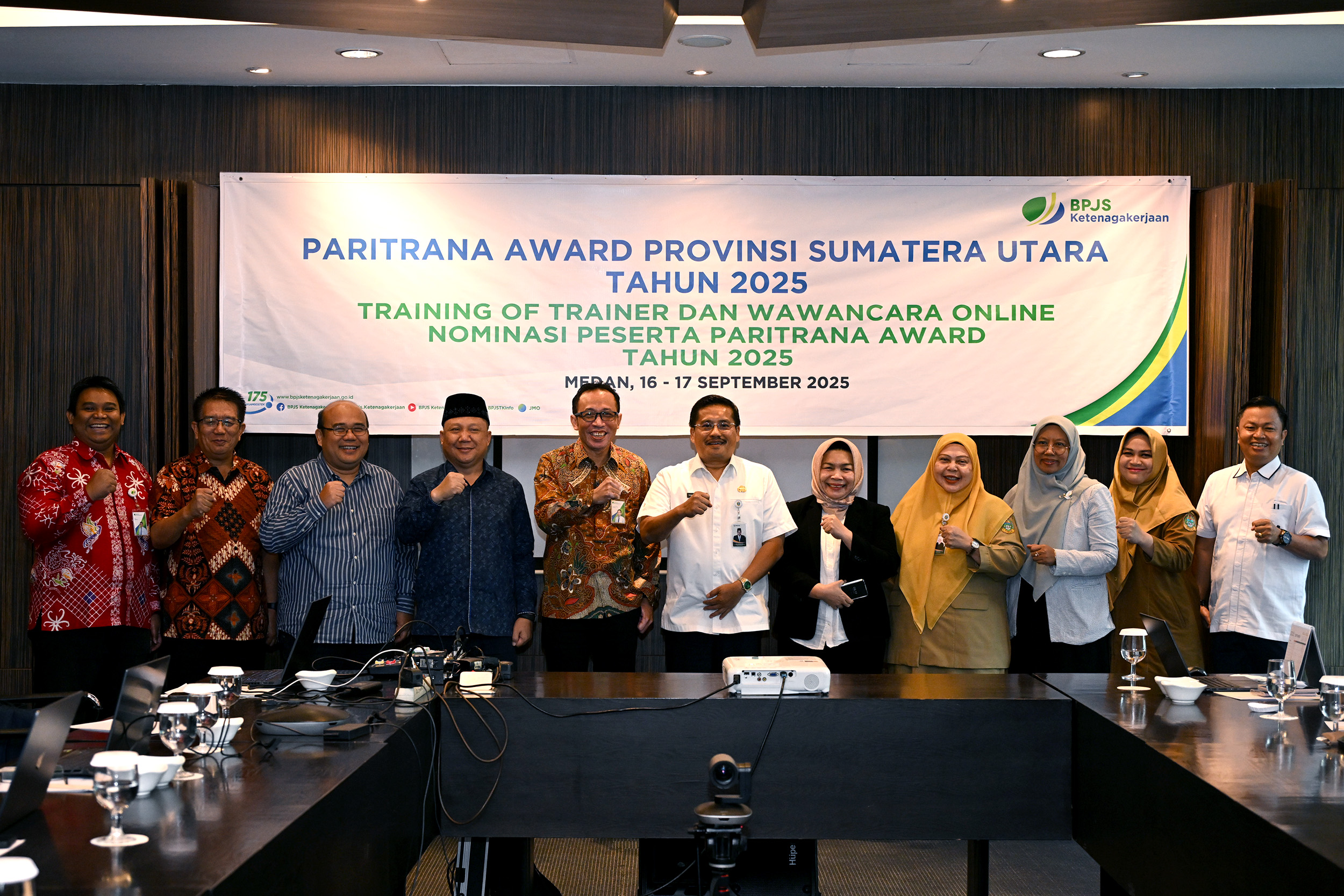 Hadir pada pertemuan ini Kepala Dinas Ketenagakerjaan Sumut Yuliani Siregar, Kepala Biro Hukum Aprilla Haslantini dan jajaran BPJS Ketenagakerjaan Kanwil Sumbagut. Hadir juga tim penilai antara lain Prof Haposan Sialagan, Dr Agusmidah, Dr Wahyu Ario Pratomo dan lainnya. **(01/red)