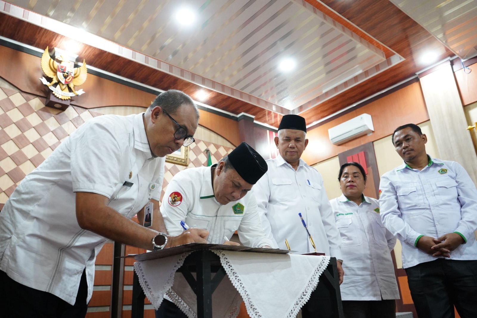 Kakanwil Kemenagsu H.Ahmad Qosbi ,S.Ag.,M.M, bersama Kepala Dinas Kesehatan Provinsi Sumatera Utara, H.Muhammad Faisal Hasrimy,A.P.,M.A.P, menandatangani MoU tersebut sebagai bentuk komitmen bersama dalam meningkatkan kualitas layanan kesehatan di madrasah, pesantren, dan lembaga pendidikan agama dilingkungan Kementerian Agama Provinsi Sumatera Utara.