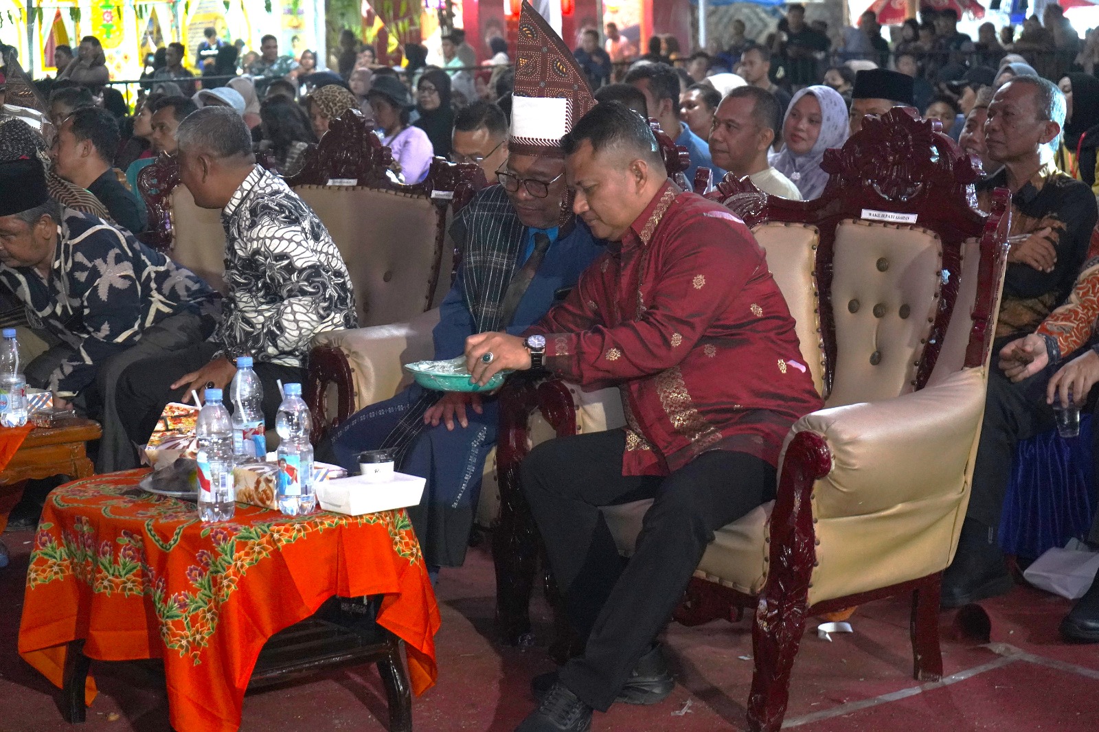 sentralberita |Kisaran ~ Wakil Bupati Asahan, Rianto, SH., M.A.P, menghadiri dan menyaksikan langsung penampilan seni dan budaya Etnis Simalungun pada kegiatan Pekan Seni dan Budaya Daerah (PSBD) ke-6 Kabupaten Asahan yang digelar di Lapangan PSBD Kisaran, Minggu (05/10/2025) malam. Kegiatan ini turut dihadiri oleh Asisten Pemerintahan dan Kesejahteraan Rakyat, Anggota DPRD, pejabat OPD, pengurus TP-PKK, Ketua FORKALA, tokoh adat dan budaya Simalungun, serta masyarakat yang memadati arena kegiatan.