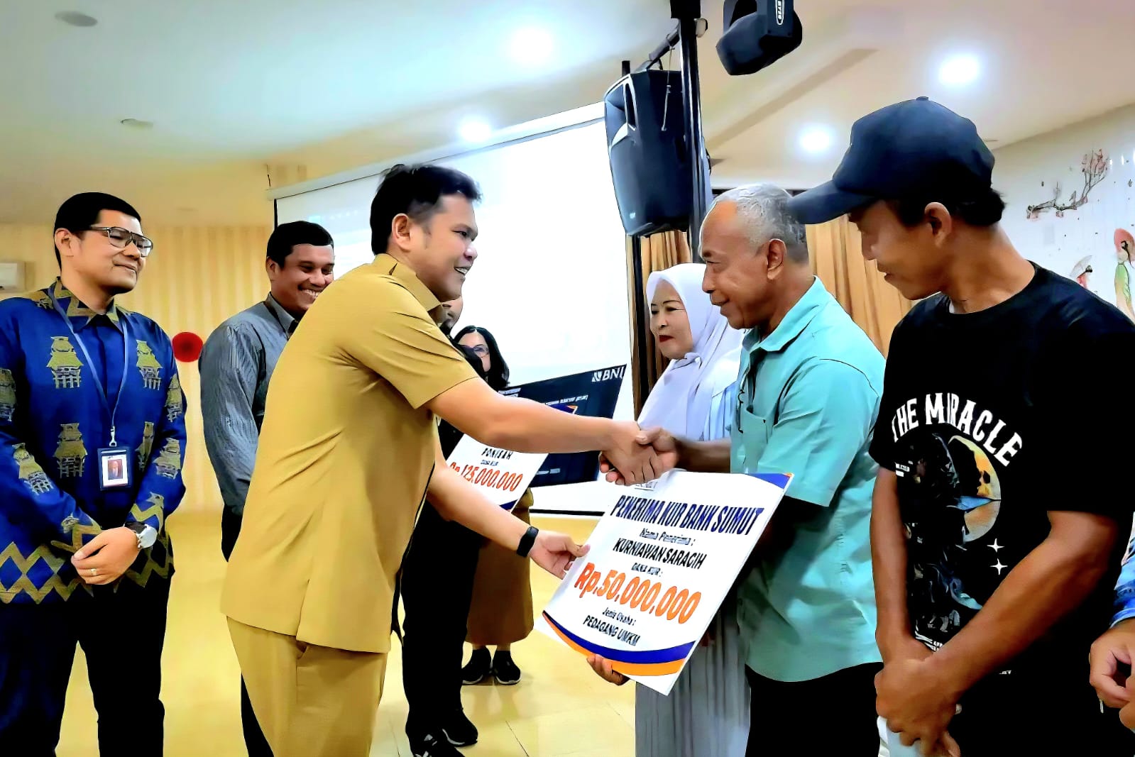 Kegiatan sosialisasi tersebut dihadiri oleh para Asisten dan Staf Ahli Bupati, Kepala Cabang Bank Sumut Sei Rampah, Bank BNI, BRI, Mandiri, BSI Perbaungan, Camat, Kepala Desa, serta narasumber dari bidang ekonomi dan pembangunan, Ir. H. Kaharuddin, MM. (SB/ARD)(