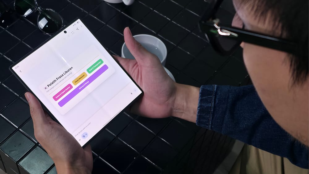Kecanggihan Google Gemini pun bisa diakses Andy dengan nyaman di layar besar Galaxy Z Fold7. Bahkan, adanya fungsi Multi Window juga memberikan kemudahan lebih bagi Andy saat ia butuh multitasking untuk menuangkan kreativitasnya. Misalnya, Andy bisa brainstorming ide konten dengan Gemini Live sambil mencatat draft naskah di Samsung Notes secara bersamaan tanpa bolak-balik buka aplikasi.