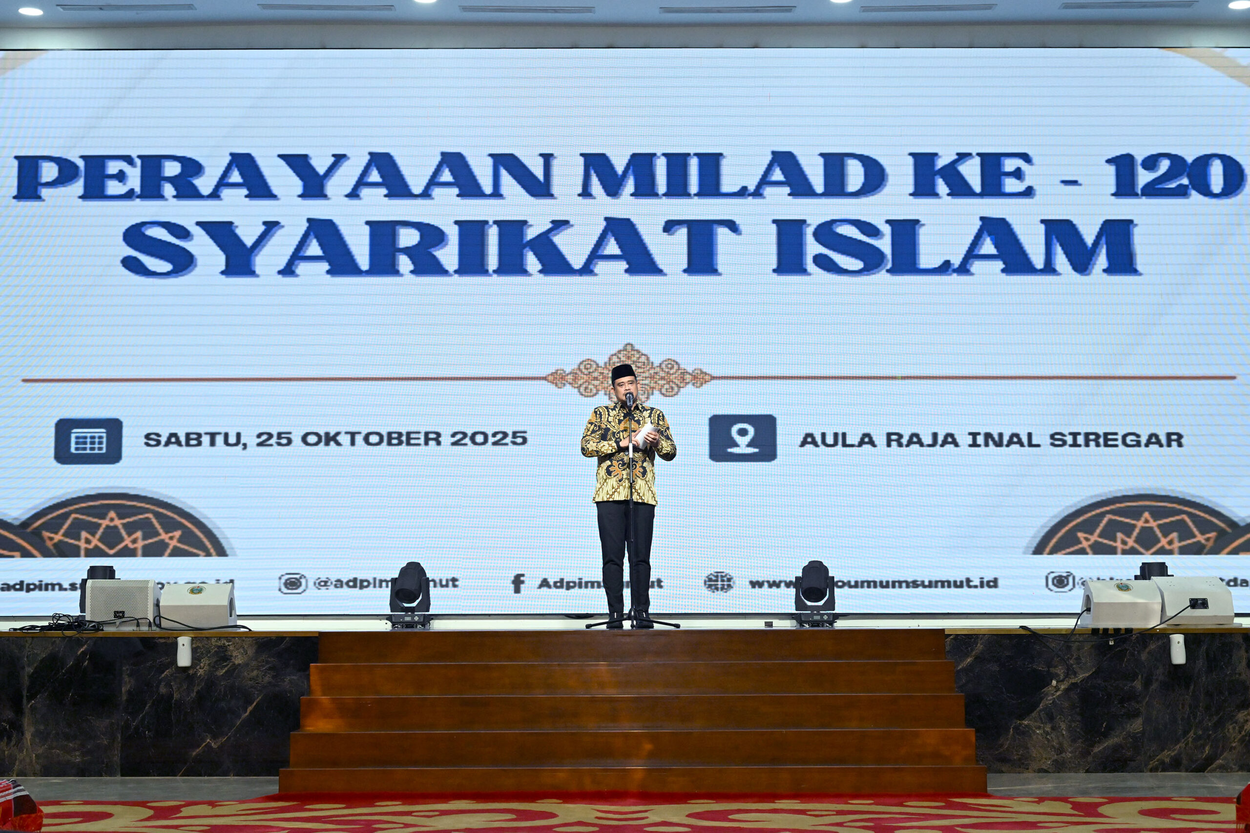sentralberita|Medan~Gubernur Sumatera Utara (Sumut) Muhammad Bobby Afif Nasution mengajak umat Islam untuk terus memperkuat kemandirian ekonomi sebagai pondasi utama dalam mewujudkan kesejahteraan dan kemajuan bangsa. Hal itu disampaikannya saat menghadiri perayaan Milad ke-120 Syarikat Islam, di Aula Raja Inal Siregar, Kantor Gubernur Sumut, Jalan Diponegoro No. 30 Medan, Sabtu (25/10/2025).