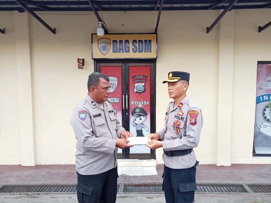 Dua personel yang menerima tali asih ini adalah Bhabinkamtibmas di Polsek TB. Selatan Aiptu Marihot Pasaribu dan Banit Satuan Lalu Lintas Bripka Tumeang C. Pasaribu.